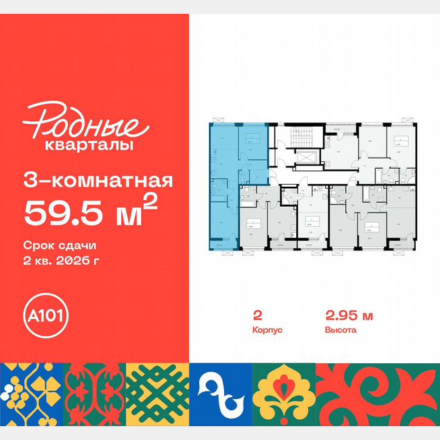 Продаются просторные 1-комнатные апартаменты общей площадью 39,5 м² на 3 этаже в сданном жилом квартале «Резиденции Архитекторов».