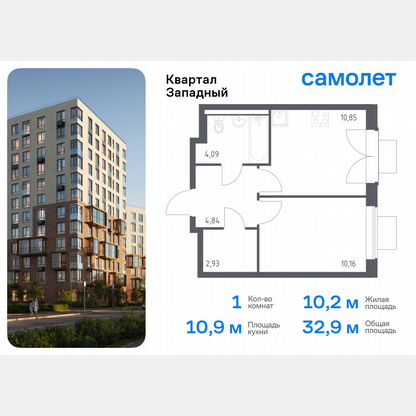 Площадь: 68.6000. Жилой комплекс Slava представляет собой группу монолитных зданий с переменной этажностью.