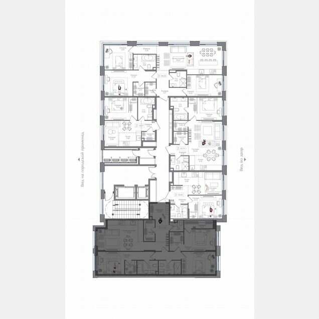 Застройщиком спроектированы квартиры с различными планировками: от студий до четырехкомнатных общей площадью от 32.6 до 140.9 кв. М. Внутренняя отделка не выполняется.