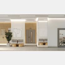 — Лобби по индивидуальному дизайн проекту от европейского бюро Вlank Architects: лаунж-зоны, ресепшен, колясочная, помещение для мытья лап животным после прогулки.